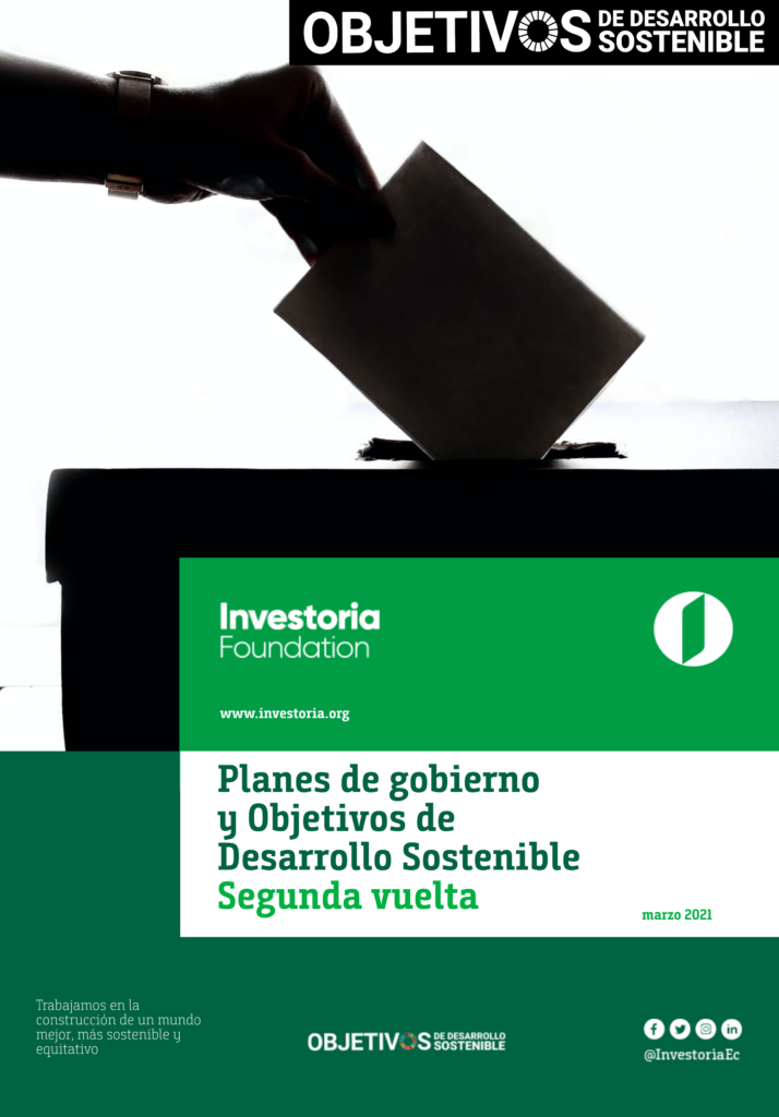 Este documento es un esfuerzo por promover el cumplimiento de los ODS en Ecuador y presenta una revisión de los planes de gobierno y su relación con los 17 ODS para determinar la importancia que los candidatos dan a estos temas y generar conciencia sobre el amplio camino que queda por recorrer para cumplir con el compromiso adquirido al 2030 y generar un compromiso en las futuras autoridades.